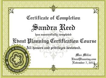 If this sounds like the package for you, it is available right now for instant access for only $47. Most at-home courses cost over $1000 so needless to say this is a steal of a price. Plus, after four months of you remaining a student, we mail you a certificate of event planning which shows that you have completed the necessary training that we provide that equips you with the knowledge to run an event planning business.